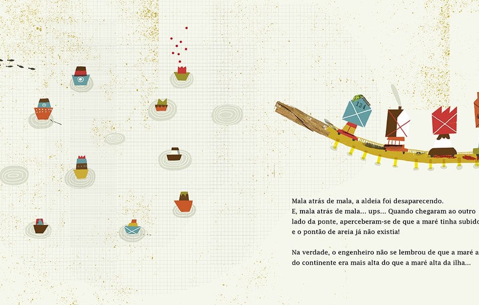 Mas, quando começa a construção da ponte, ninguém se apercebe da loucura do projeto: os engenheiros fazem os cálculos que têm a fazer e a população junta esforços em torno deste sonho coletivo. Só mais à frente vamos descobrindo como alguns cálculos estão errados e como há imprevistos que ninguém calculou.